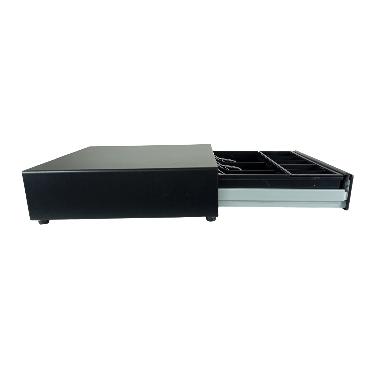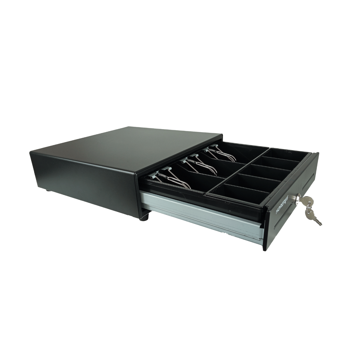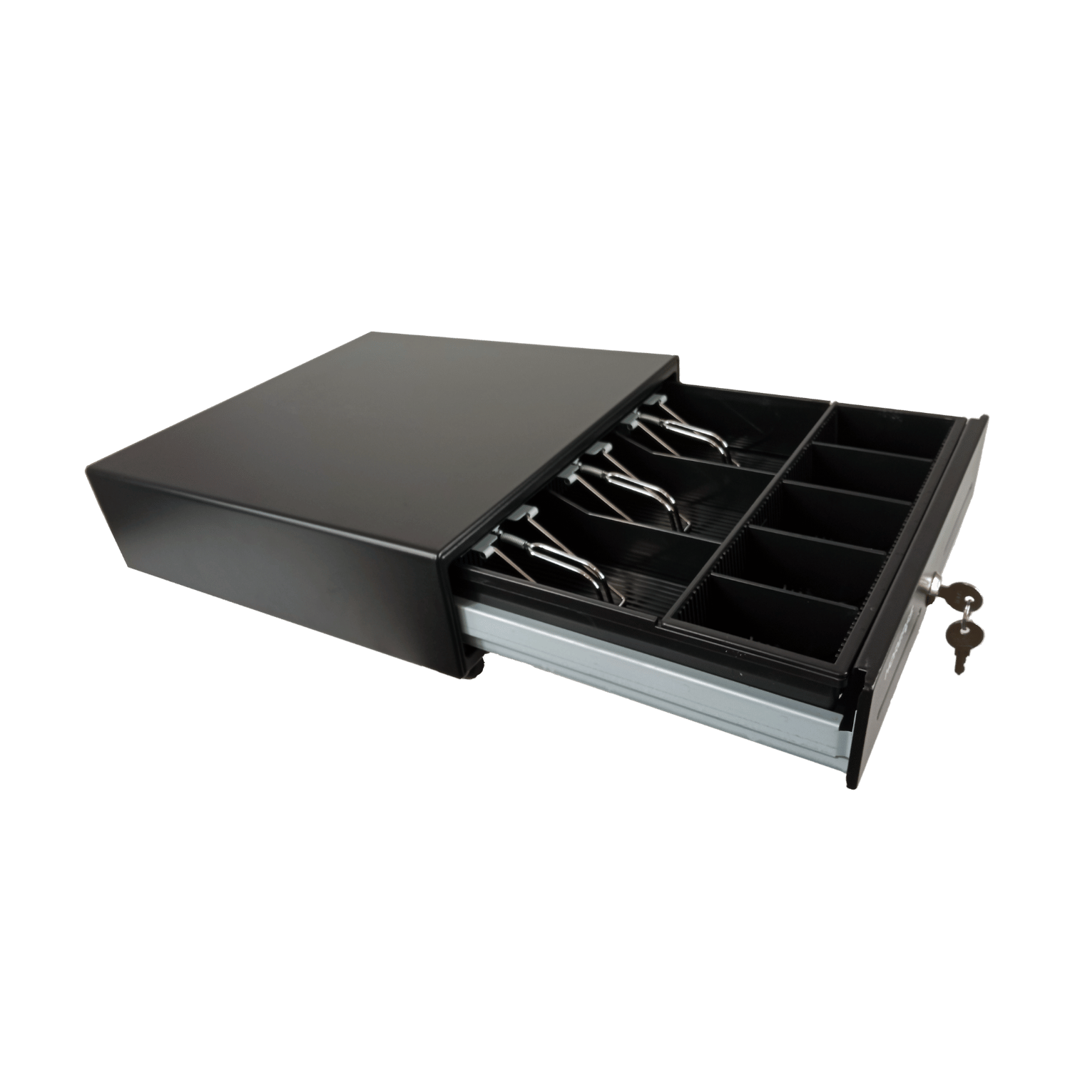 Con apertura automática y acceso frontal, incorpora 3 compartimentos para billetes y 5 para monedas, permitiendo una organización eficiente del efectivo. Además, incluye conexión RS-232 y USB, garantizando una integración sencilla con impresoras de tickets o terminales TPV.